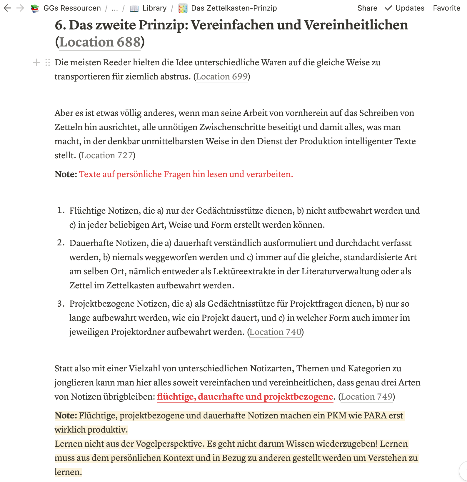Lese ich nun einen Text in einem digitalen Medium, kann ich darin Textstellen markieren und direkt mit weiteren Informationen – zum Beispiel Links zu anderen Texten, Videos oder Bildern – verknüpfen und all das, je nach Arbeitsweise, in einer Notiz-App synchronisieren, um dort meine markierten Textstellen und Notizen weiterzuverarbeiten. (2)